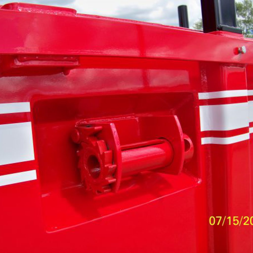 (2) Heavy-duty flush bottom under tank tool boxes with hinge down doors constructed out of 1/8” steel on both sides in front of the drive axles. 18” tall x 22” deep with the length being determined by the location of the rear axles.